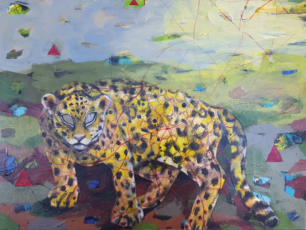 Amazon Dreams IV, mixed media on papaer 11″x13″Amazon Dreams III, mixed media on paper 11″x13″“La Puerta XI” Acrylic on canvas 24″x30″“La Puerta VII” acrylic on canvas 24″x30″“La Puerta VIII” acrylic on wood panel 16″x20″“Self Portrait – Jaguar” Mixed media on wood 18″x24″“Amazon/Titanic l” mixed media on papar wood 12″x12″