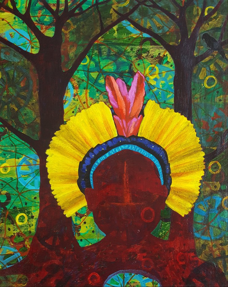 Amazon Dream II, mixed media on mdf 6″x6″